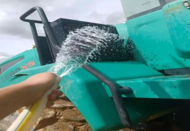 客户在哪里,服务就延伸到哪里。首站,服务团队来到一处从事泥土作业与洗沙作业的装载机客户现场。暴晒与骤雨轮番上阵,装载机在泥泞中持续高负荷运转。服务人员抵达现场后,顾不上湿透的衣衫,立即展开整机排查——空调制冷是否稳定、散热器是否堵塞、液压系统是否泄漏、电气线路是否老化,逐项细查,毫不松懈。每一个细节的把控,都是对设备可靠性的保障。