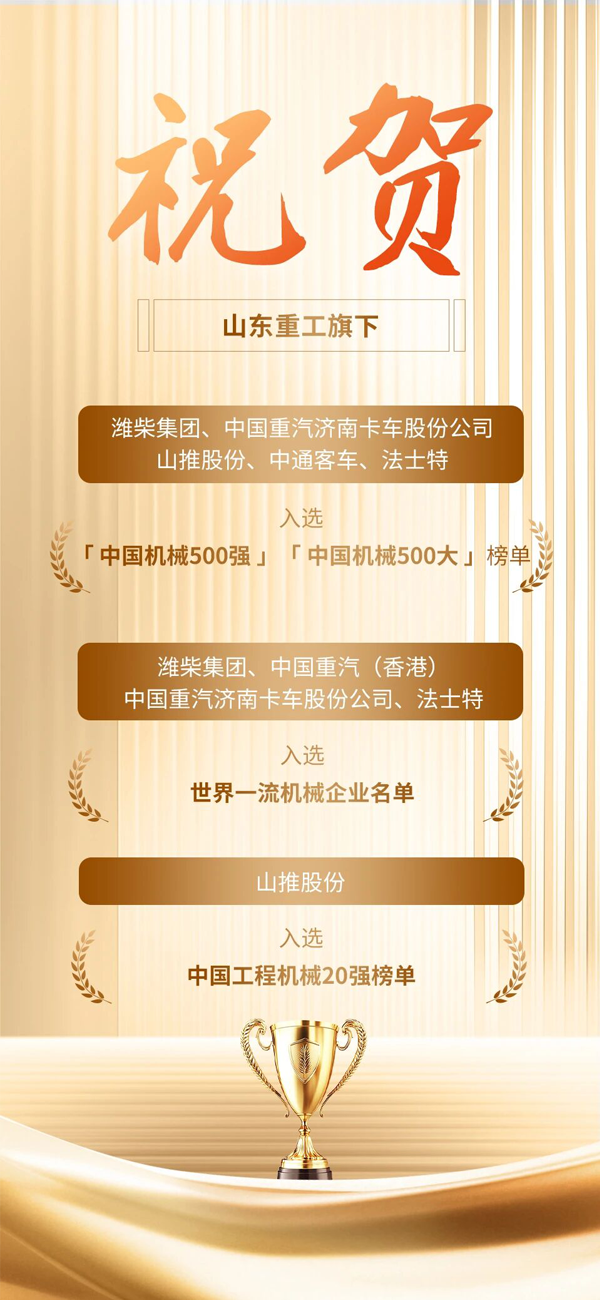 此次山东重工旗下企业集群式、高层次上榜,是集团完整产业链布局与强大协同优势的集中体现。从动力系统、商用车到工程机械,各核心业务板块均展现出行业顶级的竞争力和影响力,充分反映了集团持续推进高质量发展的显著成效。
