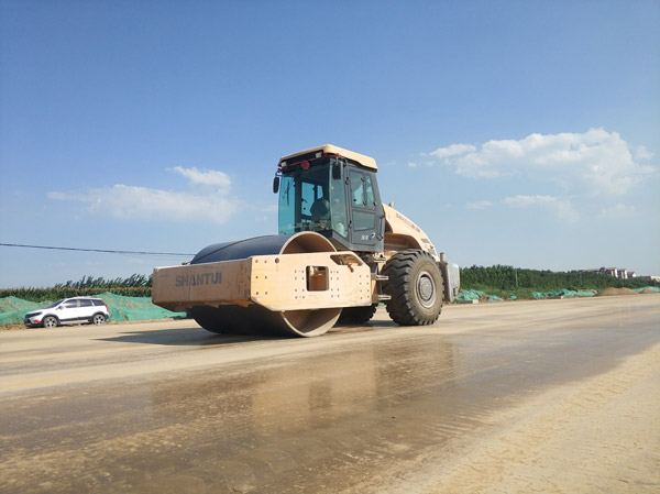 山推筑路成套设备在乌兹别克斯坦进行道路建设
