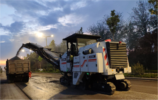 SMT50-C6N铣刨机在河北夜间铣刨施工