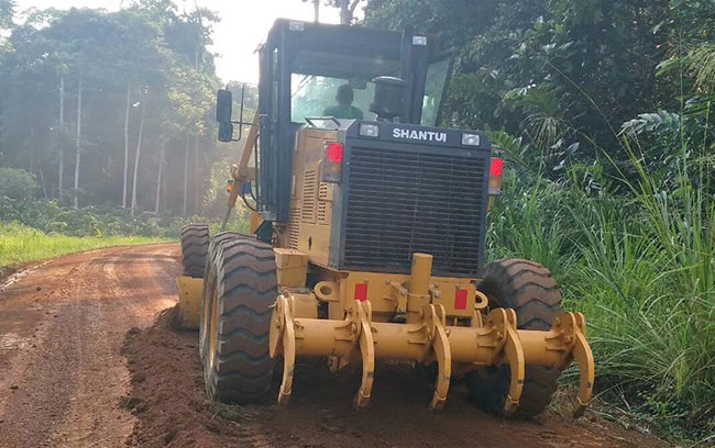加蓬某林业公司是当地最大的林业公司之一,该公司也同时拥有我公司推土机等设备,其中购买我SG18-3平地机主要用于林业伐木道路施工,进行路面土壤的刮平和修整,我公司该型号平地机在施工中表现为动力充足,工作高效,同时整机在高温环境下连续运行,表现出了极高的可靠性,为该公司的发展做出了积极的贡献,公司老板对我公司该款平地机非常认可,给予很高的评价,表示后续有需求会继续采购该型设备为其伐木事业开疆扩土,保驾护航。