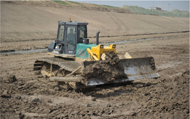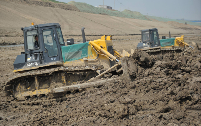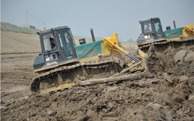 十几辆山推SD16TL推土机在运河河道内作业,“马力大、省油、驾驶室还舒服”,推土机驾驶员毫不掩饰的夸赞这些推土机。SD16TL推土机超宽的三角型履带避免了机器在软土、湿地、沼泽地带等松软物料作业场所作业时的下陷,在河道拓宽、清淤等水利工程施工中具备无可比拟的作业能力。