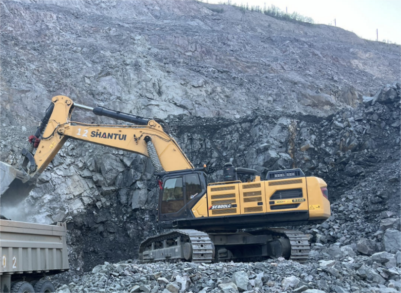 面对矿区施工的复杂挑战,山推积极提供针对性解决方案。客户提出希望进一步提升铲斗容量,以加快装车效率。对此,山推推出了SE750LC 和SE850LC机型,分别配置4.6方和5.6方铲斗,以更强的装载能力满足客户需求。此外,露天矿区粉尘污染较为严重,设备发动机的使用寿命和维护保养成为施工方关注的重点。针对这一情况,山推设备可选配反吹空滤系统,极大提升空气滤清器的维护便捷性,降低设备损耗,确保设备长时间稳定运行。