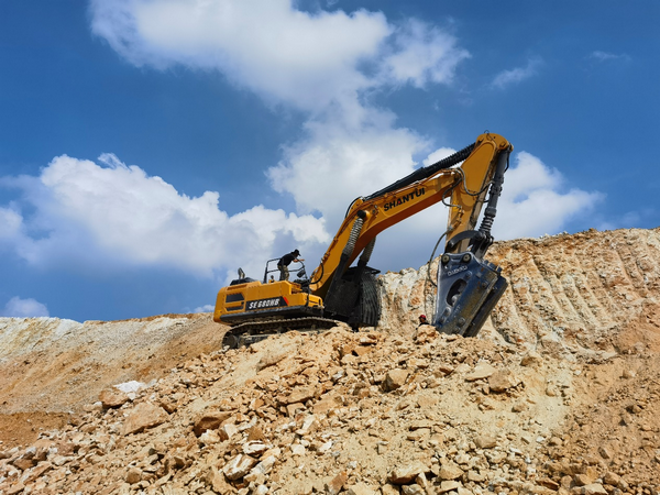 在广东省清远市佛冈县的黄花硅石矿区,机器轰鸣昼夜不息——亿万吨坚硬的石英岩正被转化为工业刚需原料。当地一家知名工程企业在此运营的大型石英矿项目中,山推SE680HB挖掘机凭借过人性能,让硬岩开采的效率与经济性实现双重飞跃,成为矿场创收的“得力干将”。