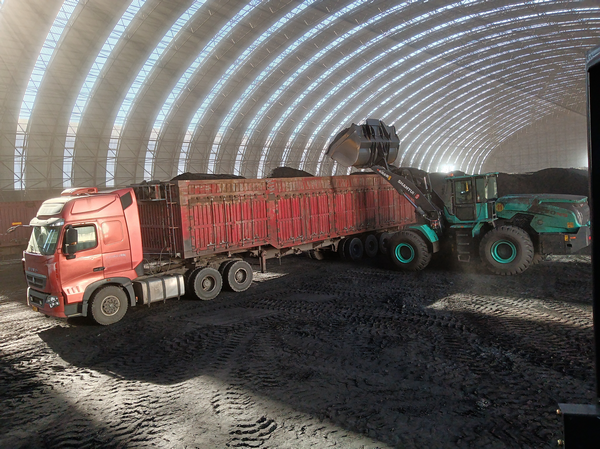 该枢纽距蒙古国纳林苏海煤矿仅100公里,4座原煤棚、1座配煤棚及多座专用煤棚构成了立体化能源中转网络。每天海量进口煤炭经吊卸、堆存后发往国内各地,高强度的作业节奏,对装卸设备的效率与连续工况适应性提出了极致要求。2023年项目启动之初,各类工程装备陆续集结,随着作业量持续攀升,兼具强劲动力与节能优势的纯电装载机,逐渐成为破解效率瓶颈的刚需之选。