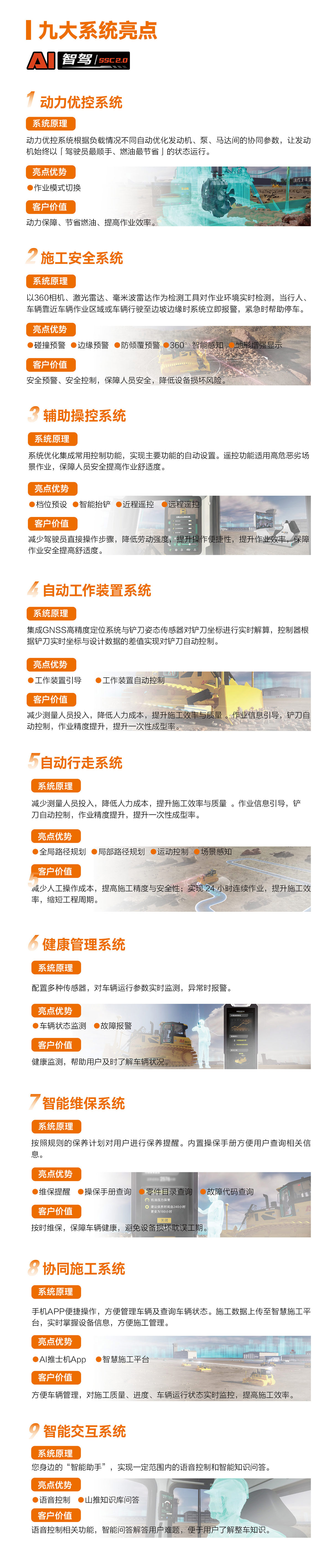 AI智驾:DH24-G 推土机,可基于山推SSC( SHANTUI Smart Constuction)技术平台实现AI升级,融合人工智能、大数据相关技术,构建 “感知 - 决策 - 执行” 全智能闭环,实现工况研判、路径动态优化、铲刀厘米级精控,以技术革新引领工程机械智能化跃迁,是行业从 “机械作业” 向 “智能决策” 跨越的典范之作。